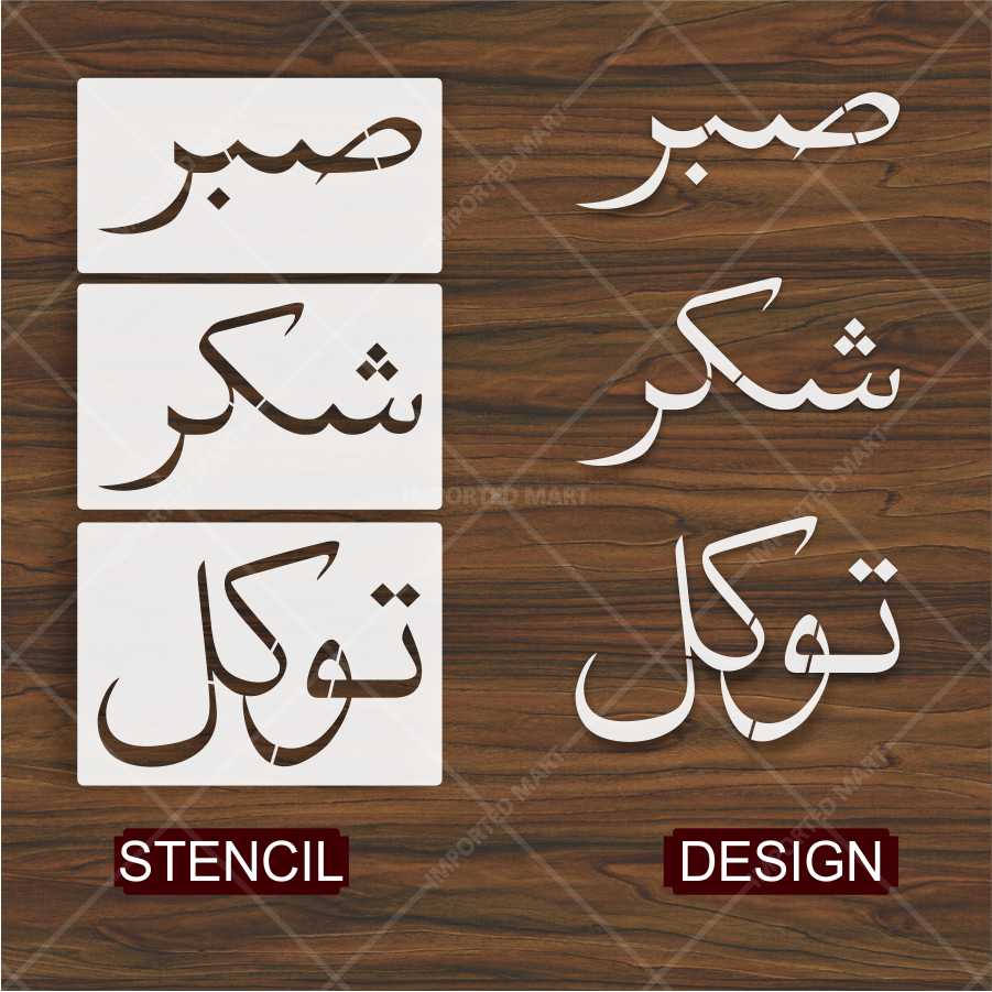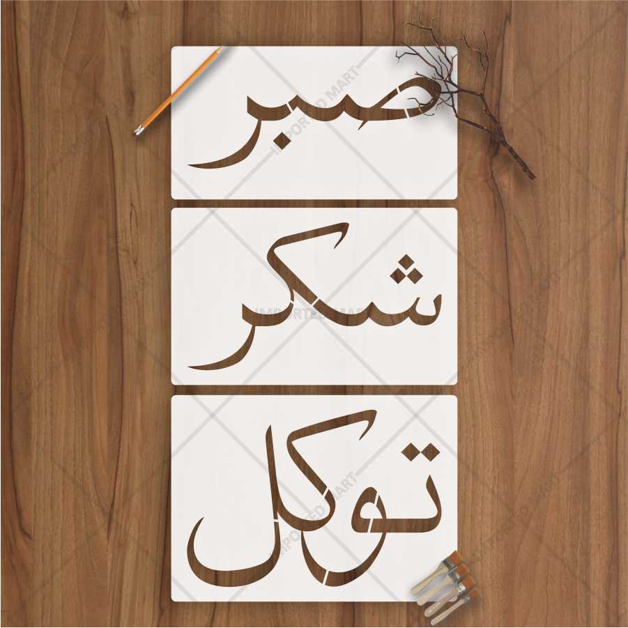Be the first to review “Sabr Shukr Tawakkul Stencil Pack – 3 Urdu Calligraphy Islamic Art Stencils”